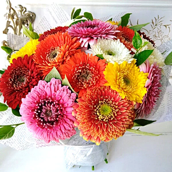 Веселенький букет, поднимает настроение! Доставили в установленный срок, цветы свежие. Спасибо!