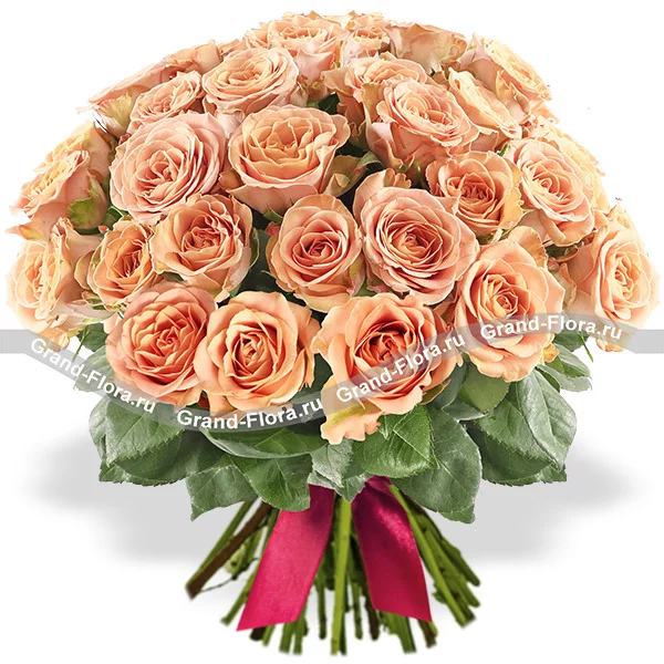 Роза Капучино 60 см. - 41 шт., упаковка, лента.