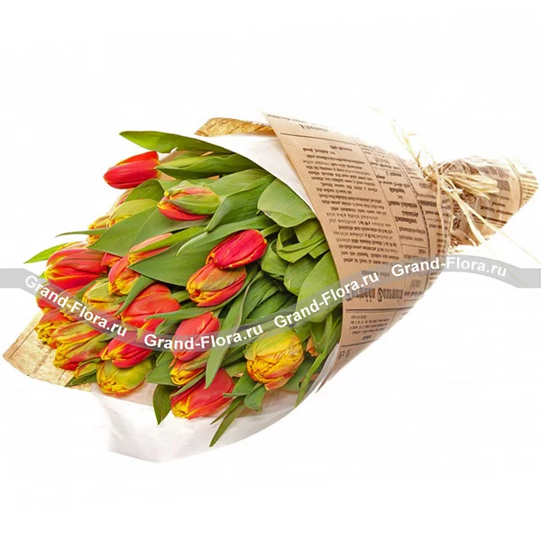 25 тюльпанов: тюльпаны красные - 25 шт, бант красный.