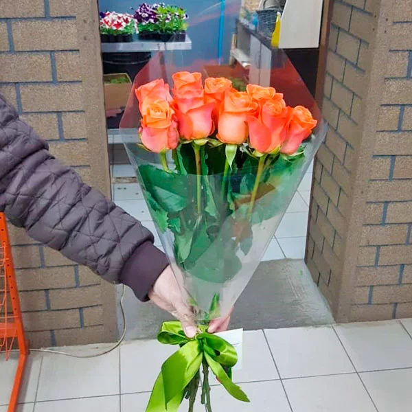 Внимание: сорт роз может отличаться от сорта на картинке, оттенок допустим от ярко-оранжевого (сорт Нина) до светло-оранжево-желтого