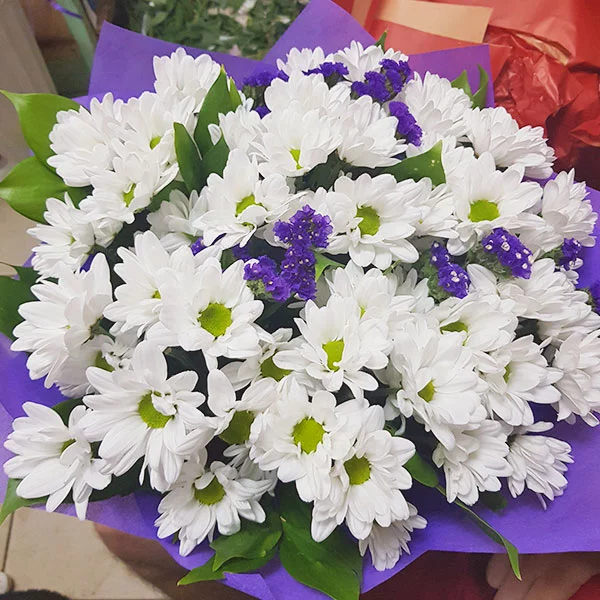 Букет из элегантных белых кустовых хризантем – само олицетворение нежности и женственности. Такой изысканный комплимент даст девушке почувствовать себя прекрасной богиней!
