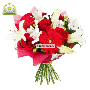 Спасибо за букет. Все так же как на фото с сайта! Привезли в указанное время! Цветы свежие, букет соответствует заявленным размерам! Молодцы